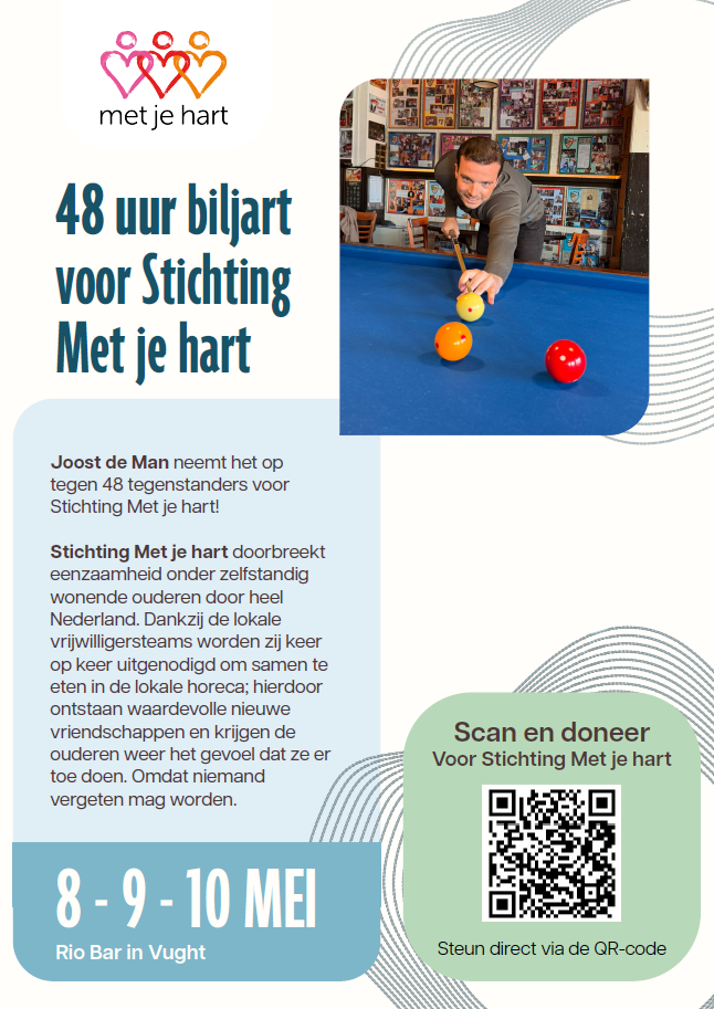 48 uur biljart voor Stichting Met je hart