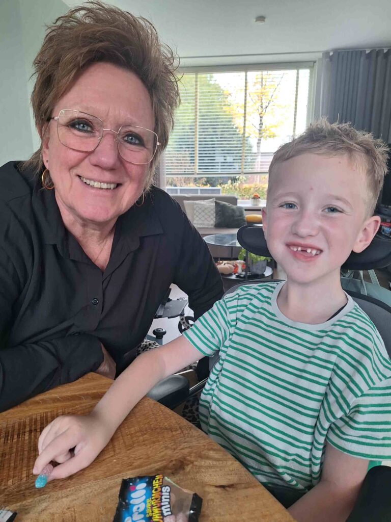 Henny Maartens (62) is oma van James (6), die de spierziekte SMA type 1 heeft. Bij SMA maakt het lichaam een bepaald eiwit niet aan, waardoor de spieren langzaam verzwakken. Toen hij deze diagnose kreeg was hij anderhalf jaar oud. “De artsen zeiden dat hij waarschijnlijk niet ouder dan twee zou worden”, vertelt Henny. “Dat is iets dat je altijd in gedachten hebt, waardoor je ieder moment bewust leeft.”