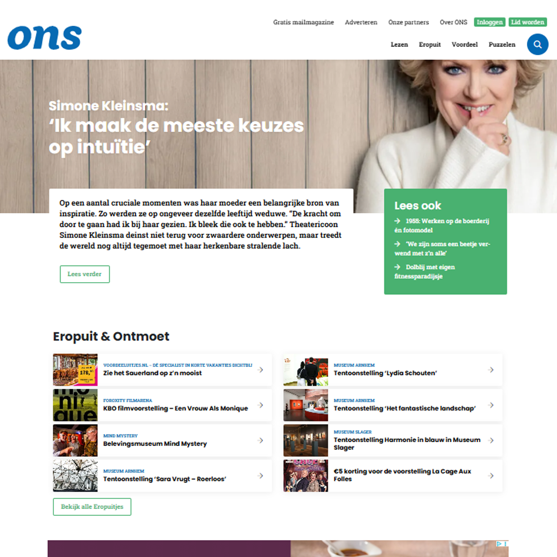 Lisa zorgde er in de eerste plaats voor dat de digitale uitgaven van ONS nauwer aansluiten bij het gedrukte magazine. “We pasten de letters en kleuren aan, zodat het mailmagazine en de website beter herkenbaar zijn”, legt ze uit. “Verder hebben we de indeling van webplatform onsmagazine.nl flink verbeterd, zodat lezers gemakkelijker door het grote aanbod van artikelen, tips, aanbiedingen, er-op-uitjes en puzzels kunnen navigeren. Het papieren magazine kreeg in januari 2024 al een nieuwe frisse look, nu zijn ook het digitale magazine en de website in een bijpassend jasje gestoken. De online uitingen van ONS zijn nu helderder en beter doorzoekbaar.”
