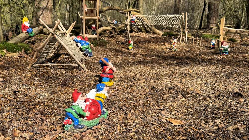 In het derde jaar dat het pad open is, is de belangstelling om mee te helpen weer erg groot. “Die interesse groeit elk jaar”, weet Hein. “We hebben verschillende werkgroepen, zoals een schilder-, bouw- en bosgroep, en ook mensen die voor flyers en kleurplaten verzorgen. De kabouters hebben een heuse Facebookpagina onder de naam Kabouterpad Papatoe Odiliapeel. Op die pagina zijn nog veel meer foto’s te zien.” In het bos staan ruim tweehonderd kabouters, gegroepeerd in thema’s als op de camping, het voetbalstadion, het festival, het klimpark en – dit jaar nieuw – op de boerderij. “De gasten van welzijnsorganisatie Stichting Samen Odiliapeel haken en breien diverse spulletjes, zoals een sprei voor de bedjes, was voor aan de waslijn en puntmutsjes voor de kabouters”, vult Hein aan.