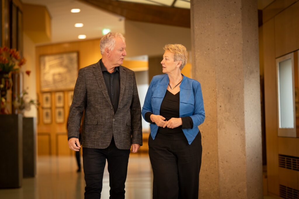 Druk overleggend lopen Jan Struijs en Corrie van Brenk door de brede gang achter de grote vergaderzaal van de Tweede Kamer. Ze houden de pas erin, want de agenda is zoals gebruikelijk boordevol. Even lopend wat zaken afstemmen onderweg naar een volgende afspraak bespaart tijd en is wel zo praktisch. Hun tempo is de fotograaf echter iets te hoog. “Hoho, als jullie zo snel lopen kan ik geen goede foto maken”, maant hij. Dan maar even een tandje terug: Struijs en Van Brenk minderen vaart. Dat is eigenlijk tegen hun principes, want de twee kersverse Kamerleden van 50PLUS houden van doorpakken.