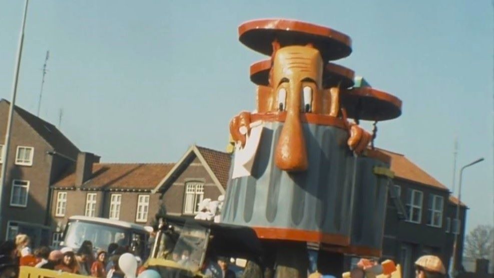 van 1971 tot 1976 door Mierlo-Hout en Helmond trokken is dat tijdsbeeld goed te zien. In de stoet rijdt bijvoorbeeld een praalwagen mee met enorme bananen, bevolkt door feestende deelnemers met kroeshaar en een zwart geschminkt gezicht. Iets dat anno 2025 niet meer kan. In de optocht wordt ook verwezen naar de oliecrisis van destijds – weet u nog: ‘Den Uyl is in den olie’ van Vader Abraham en Boer Koekoek? – en naar de film Keetje Tippel uit 1975.
