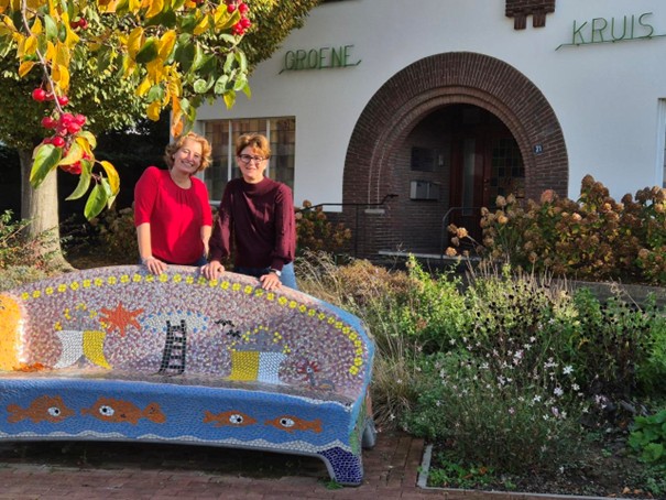 Bij stichting SCE zijn inmiddels bijna 100 vrijwilligers actief. “Belangrijk is dat iedereen hier ertoe doet en meedoet. En dat start vanuit ontmoeting,” vertelt Ellen. “Sommige vrijwilligers doen heel veel, anderen kleine dingetjes, dat is onze kracht. Het maakt niet uit wat je doet, iedereen is even belangrijk. Dat maakt het zo bijzonder.” De oudste vrijwilliger is Anneke, ze is 87 jaar. Ze is twee ochtenden per week actief in de mooie tuin achter het Groene Kruisgebouw. Dat doet ze met veel plezier. “Thuis zit ik maar te piekeren en heb ik overal pijn. Daar heb ik hier geen last van. Ik doe hier van alles, van onkruid wieden tot eikeltjes rapen. Hier voel ik me niet oud en blijf ik in beweging. Daarom kom ik hier heel graag.”